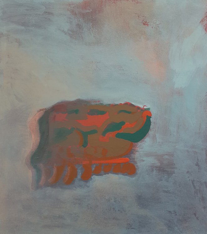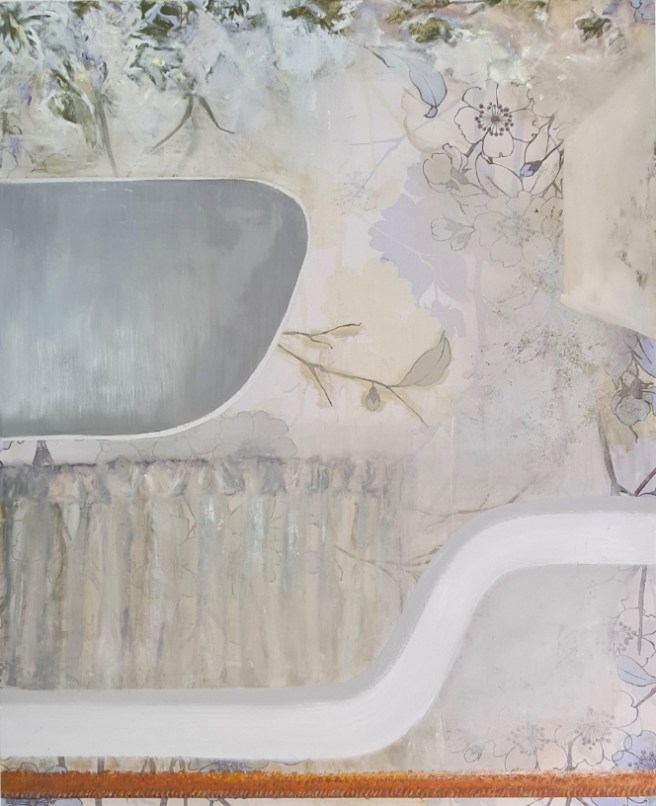 Cool Relief, 2024, acrylic and oil on linen, 53 x 44cmSwirl, 2024, acrylic and oil on canvas, 65 x 55cmGather, 2024, oil on handmade panel, 18 x 21cmBase, 2023, acrylic and oil on handmade panel, 18 x 21cmStatic (variegation), 2024, acrylic and oil on printed cotton sheet, 95 x 78cmScale, 2022, enamel on handmade panel, 44 x 40cm